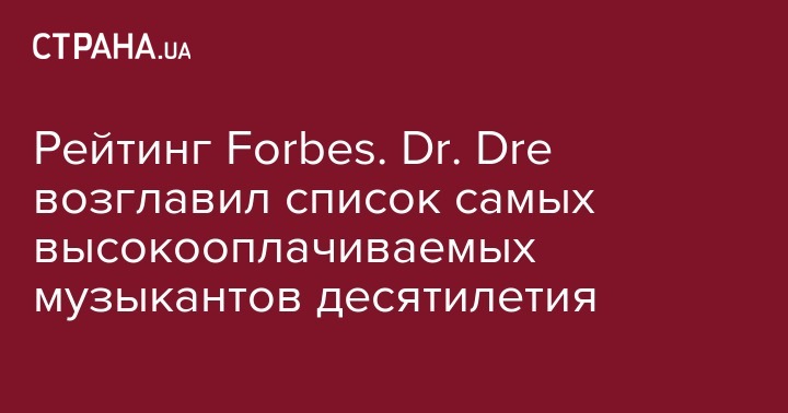 Рейтинг Forbes. Dr. Dre возглавил список самых высокооплачиваемых музыкантов десятилетия