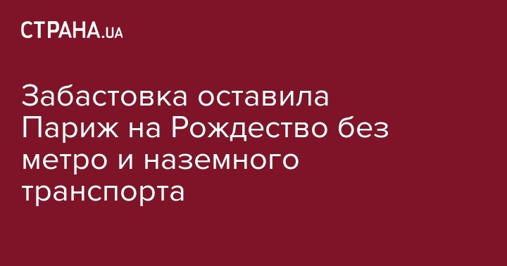 Во Франции 25 декабря, когда в стране отмечают католическое Рождество, в Париже из-за забастовки перестали ходить пригородные поезда и автобусы, также закрыли все линии метро. Об этом сообщает RFI.