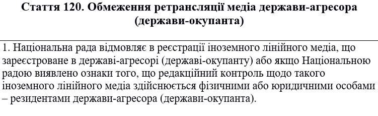 "Запрещается положительное освещение деятельности органов власти государства-агрессора. Информация об их деятельности должна подаваться при соблюдении принципов объективности и сбалансированности".
