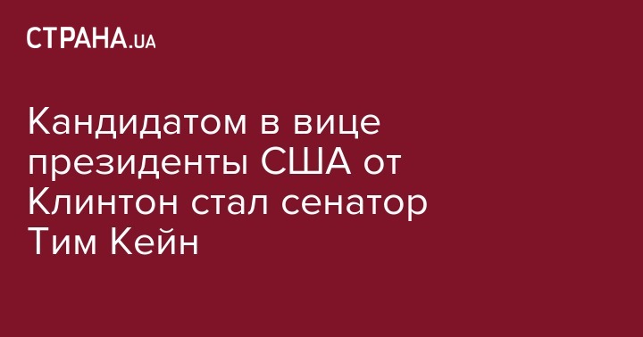 Второй кандидат в президенты США объявил "главного соратника". Представляющая демократическую партию США экс-госсекретарь Хиллари Клинтон назвала сенатора от штата Вирджиния Тим Кейн своим кандидатом в вице-президенты, сообщает ГазетаРу.