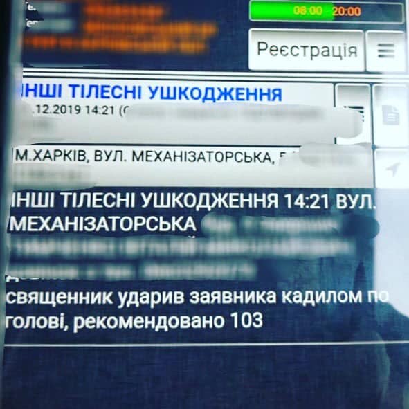 "Священник ударил заявителя кадилом по голове, рекомендовано 103", - говорится в заявлении.