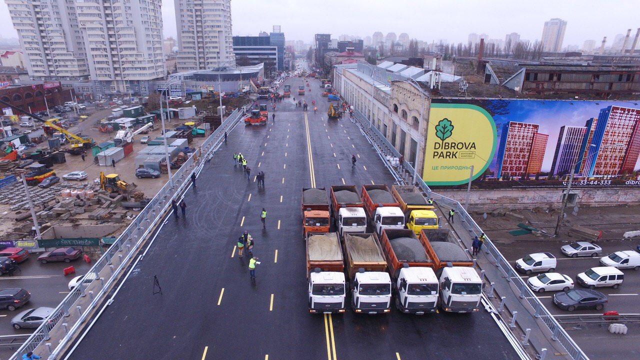 Новый Шулявский мост уже заасфальтировали и нанесли на дорожное покрытие временную разметку. После этого и прошли испытания.