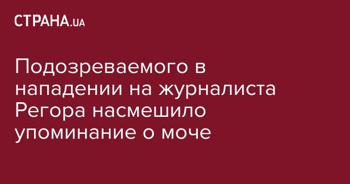 Как передает корреспондент "Страны", в то время, как Регору зачитывали подозрение и прокурор дошел до нападения на журналиста с бутылкой мочи, подозреваемый начал смеяться.