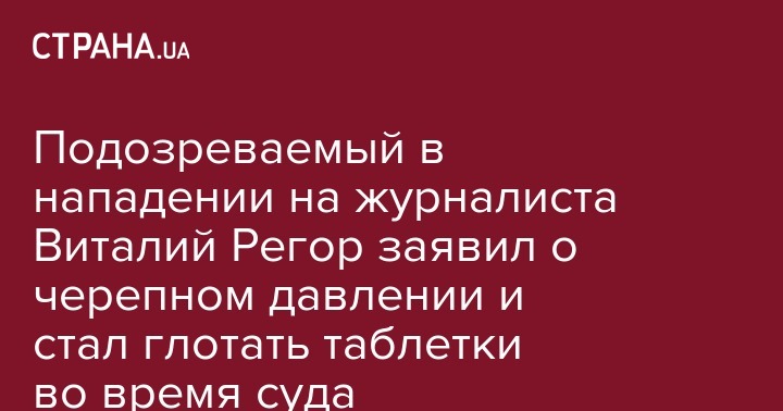 Корреспондент "Страны" сообщает, что после вопроса прокурора о том, имеются ли заболевания, которые бы запрещали взять подозреваемого под стражу, Регор демонстративно принял неопределенные таблетки, заявив, что у него внутреннее черепное давление.
