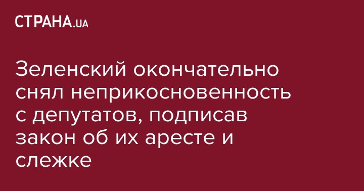 Зеленский окончательно снял неприкосновенность с депутатов, подписав закон об их аресте и слежке