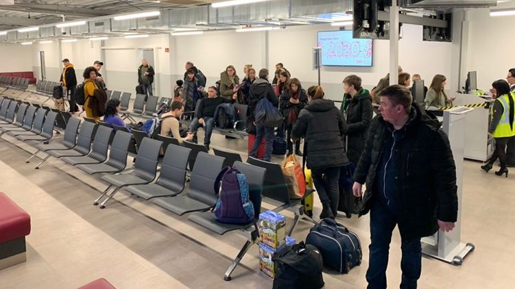 Украинские пассажиры в аэропорту Шенефельд, Берлин. Фото: Денис Гороховский