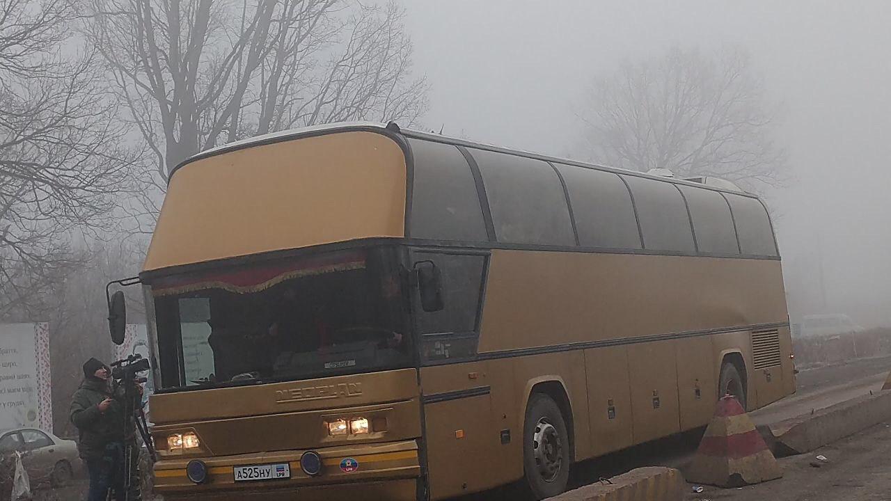 14:08  Через блок-пост сепаратистов под Горловкой проследовали луганчане, который увозят своих освобожденных домой.
