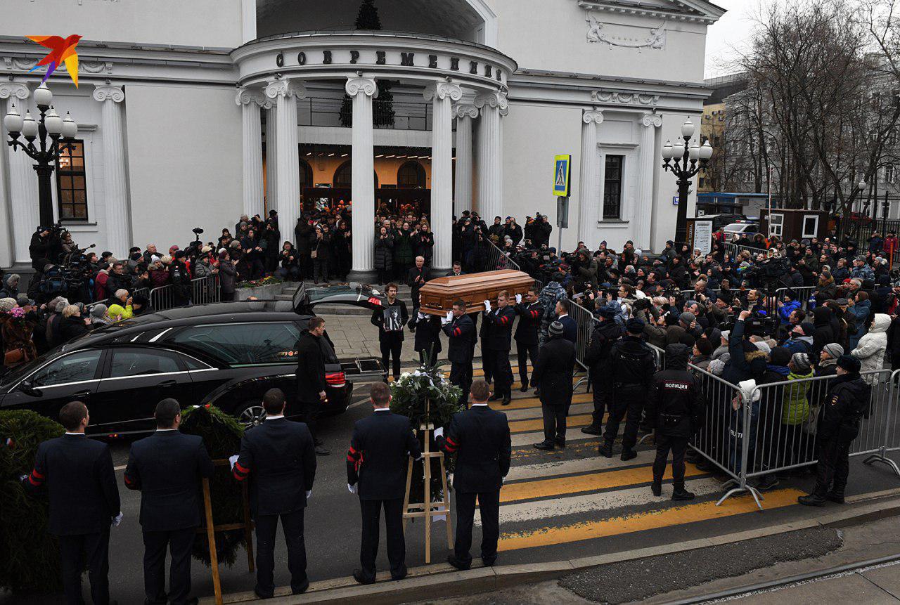 Поклонники творчества Волчек несли цветы, сцена была плотностью заставлена венками. Участники траурной церемонии проводили Волчек аплодисментами.