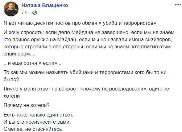 "Я вот читаю десятки постов про обмен "убийц и террористов"