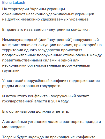 Адвокат Елена Лукаш обращает внимание на то, что меняли сегодня в основном граждан Украины. То есть о какой внешней агрессии может идти речь?