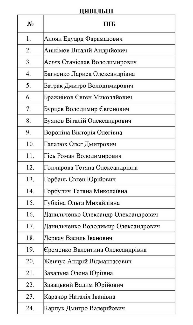 Полный список украинцев освобожденных в результате обмена пленными