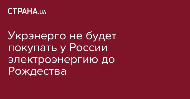 Укрэнерго не будет покупать у России электроэнергию до Рождества