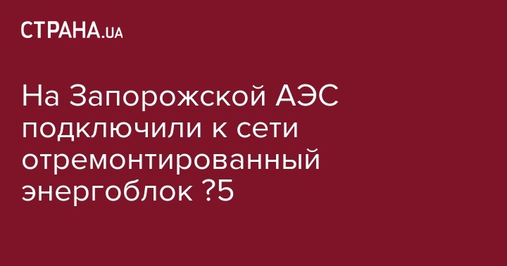 Как отмечается, энергоблок №5 Запорожской АЭС после окончания планового среднего ремонта досрочно подключен к энергосистеме страны сегодня, 23 июля 2016 года, в 8 часов 44 минуты. Ведется набор мощности.