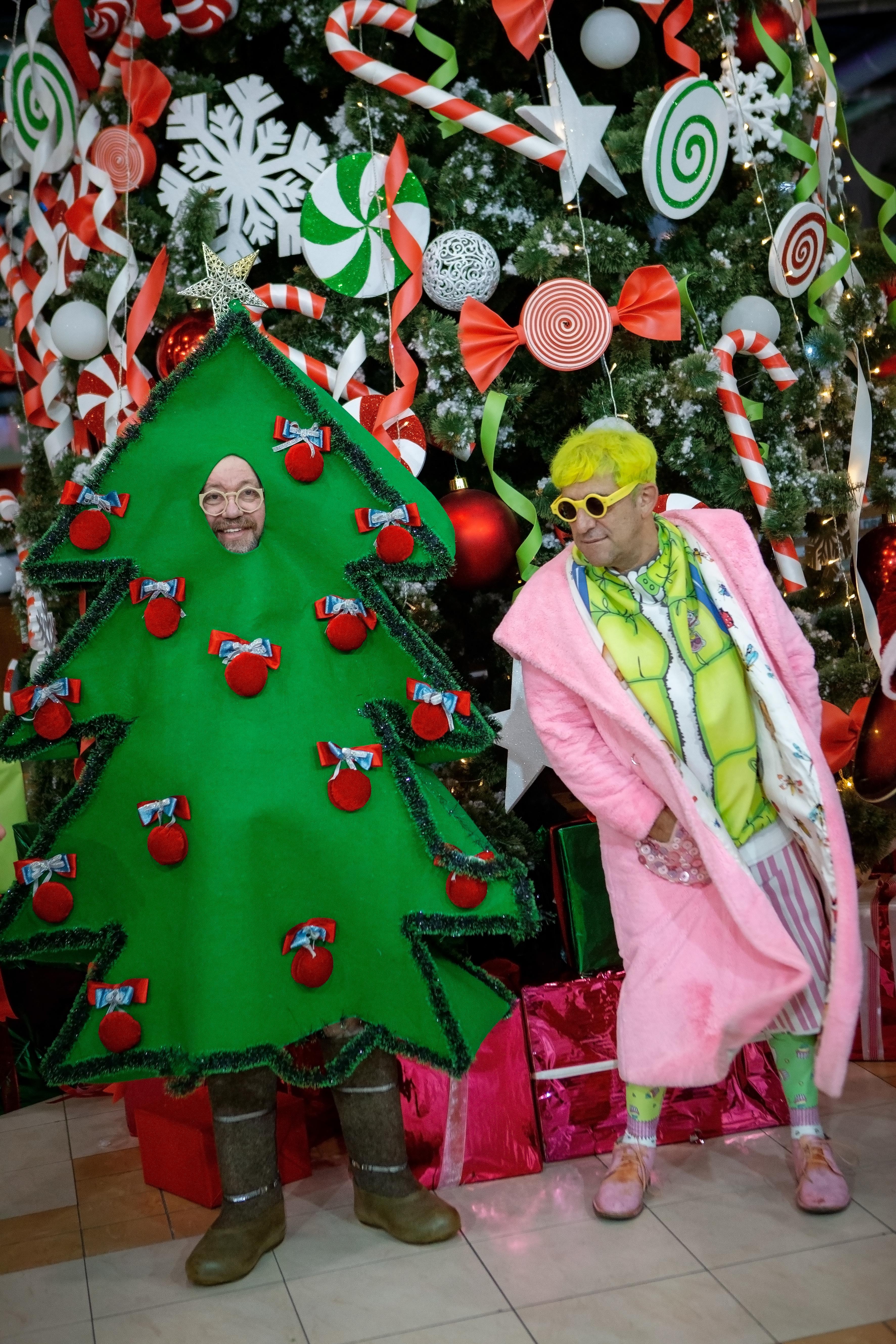 Александр Меламуд был одет в костюм символа праздника - новогоднюю елку, а его партнер Гарик Корогодский выступил в роли "Плохого Санты".