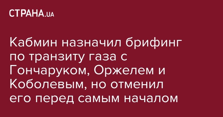 Кабмин назначил брифинг по транзиту газа с Гончаруком, Оржелем и Коболевым, но отменил его перед самым началом