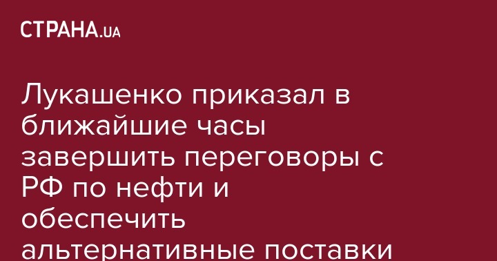 Кроме того, Лукашенко поручил обеспечить уже в ближайшие дни поставку нефти из альтернативных источников. Речь идет о поставках железнодорожным транспортном из портов на Балтике, а также о задействовании для альтернативных поставок нефтепровода "Дружба".