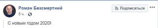 Бывший представитель Украины в политической подгруппе трехсторонней контактной группы по урегулированию ситуации в Донбассе Роман Бессмертный написал в Facebook краткое "С новым 2020 годом!", но опубликовал свое фото в костюме Деда Мороза.