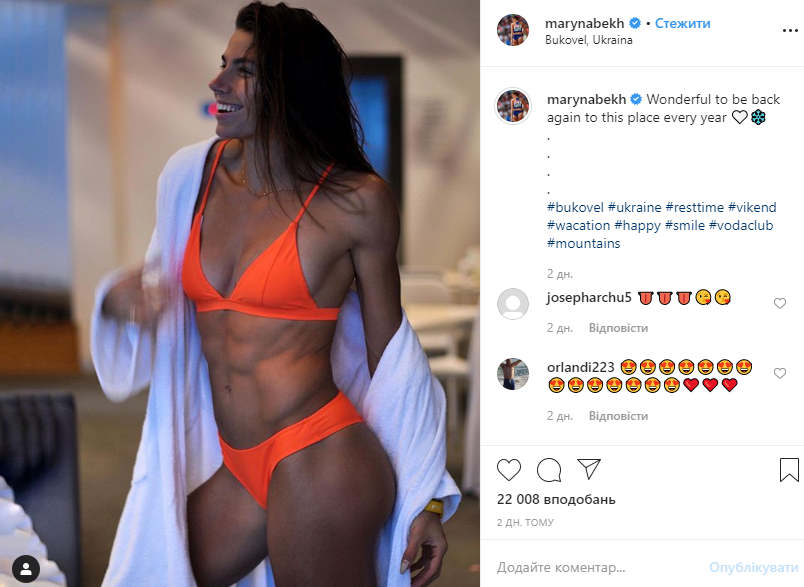 Настоящий фурор в социальных сетях вызвала знаменитая украинская легкоатлетка Марина Бех-Романчук после того, как на своей странице в Instagram она опубликовала видео, сделанное во время отдыха в Буковеле.