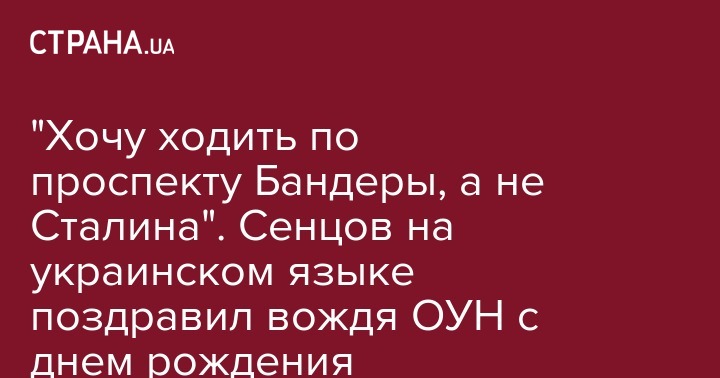 "Хочу ходить по проспекту Бандеры, а не Сталина". Сенцов на украинском языке поздравил вождя ОУН с днем рождения