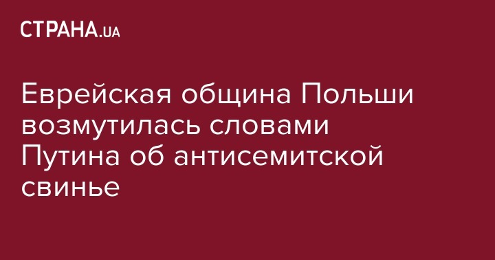 Еврейская община Польши возмутилась словами Путина об антисемитской свинье