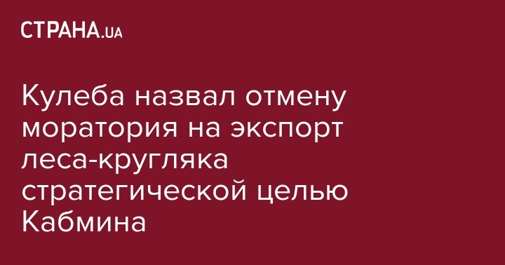 Вице-премьер-министр Украины Дмитрий Кулеба заявил, что отмена моратория на экспорт леса-кругляка является стратегической целью Кабмина. Об этом он рассказал в интервью "Интерфакс-Украина".