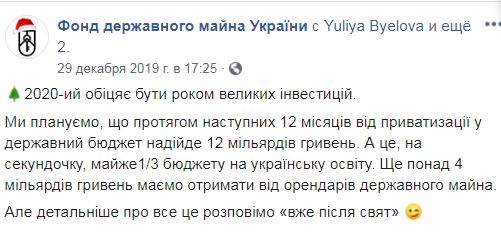 Также ФГИ сообщил, что в 2020 году Украина хочет получить от приватизации 12 млрд гривен.