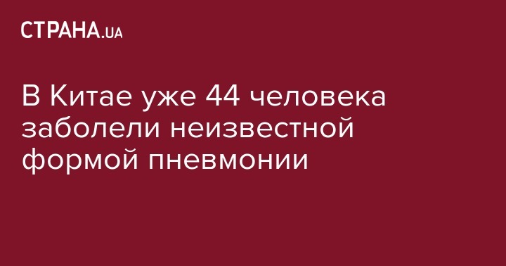 В Китае обнаружили уже 44 случая заболевания неизвестной формой пневмонии, вспышка которой случилась недавно. Об этом сообщает на Центральное информационное агентство Китая "Синьхуа".