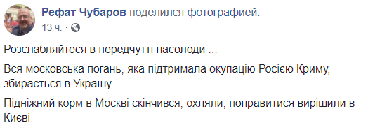 Подножный корм в Москве закончился, ослабели, поправиться решили в Киеве", – написал глава Меджлиса крымскотатарского народа Рефат Чубаров.