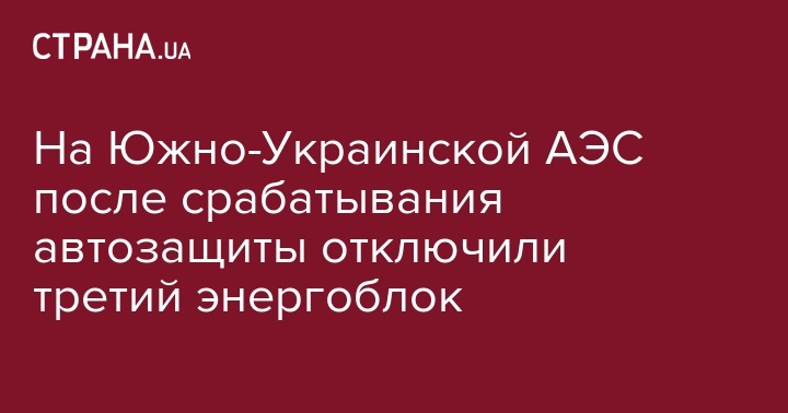 На Южно-Украинской АЭС в Николаевской области произошло автоматическое отключение третьего энергоблока из-за срабатывания автоматической защиты.