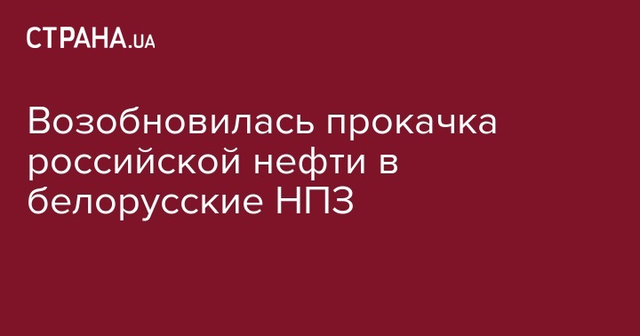 Прокачка российской нефти на белорусский НПЗ "Нафтан" в Витебской области возобновилась вечером 4 января. Об этом сообщает БЕЛТА, со ссылкой на заявление заместителя председателя "Белнефтехима" Владимира Сизова.