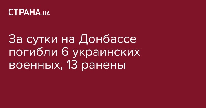 По данным Мотузяника, за минувшие сутки в зоне АТО погибли 6 украинских военных, еще 13 солдат получили ранения различной степени тяжести, кроме того, 8 военных были контужены