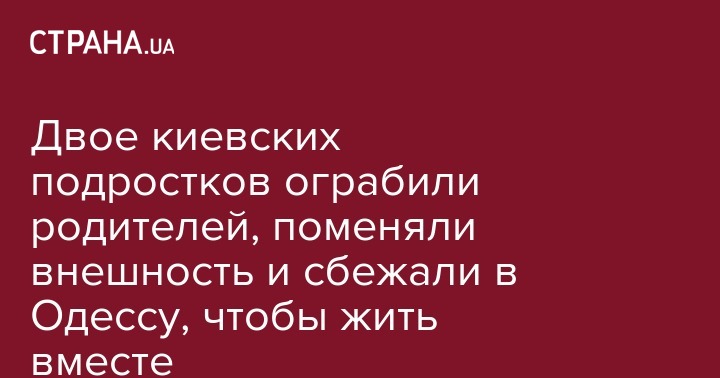 Двое подростков из Киева убежали из дома, предварительно ограбив родителей. Они поменяли одежду и прически, чтобы их не узнали и отправились в Одессу.  16-летних юношу и девушку правоохранители нашли и передали родителям. Об этом сообщает пресс-служба полиции