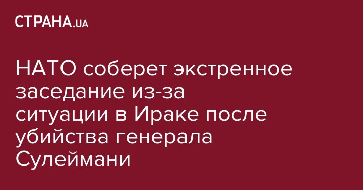 НАТО соберет экстренное заседание из-за ситуации в Ираке после убийства генерала Сулеймани