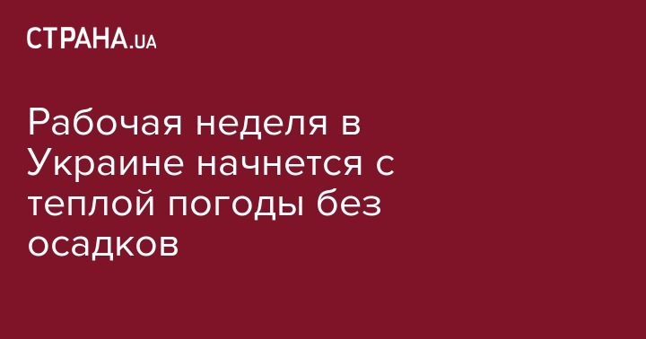 Рабочая неделя в Украине начнется с теплой погоды без осадков