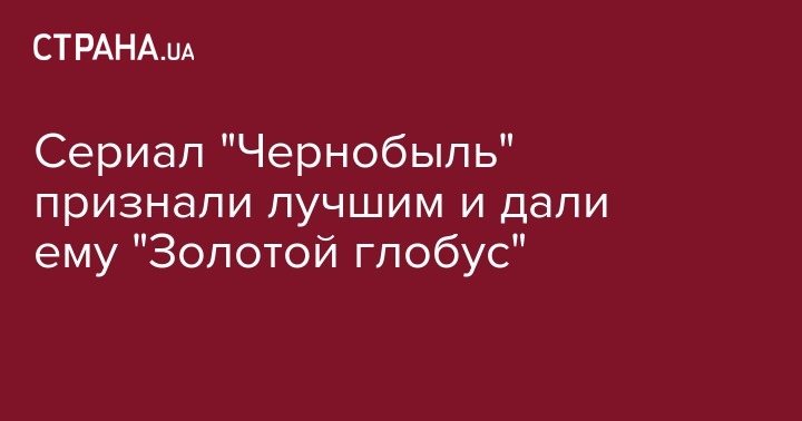 Британско-американский мини-сериал "Чернобыль" о трагедии в Украине в 1986 году получил престижную кинопремию "Золотой глобус" в номинации "Лучший мини-сериал или телефильм". Об этом говорится на официальном сайте премии.