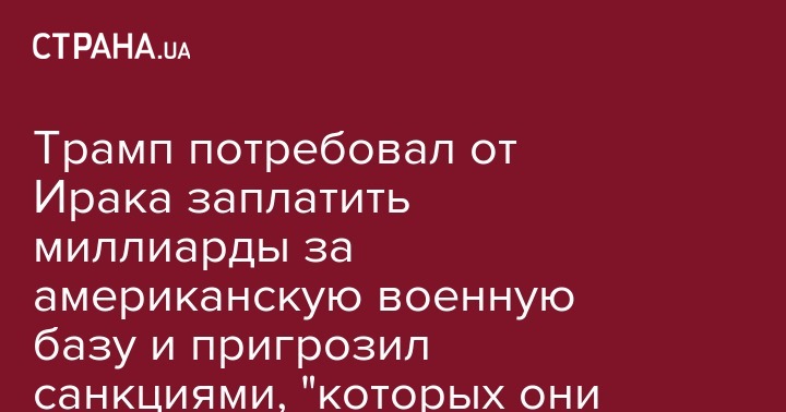 Трамп также пообещал, что если Ирак будет требовать вывода войск "в недружелюбной манере", Америка наложет на Багдад санкции.