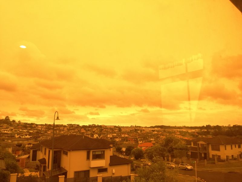 Жительница новозеландского города Окленд запостила в твиттер фото, на котором запечатлен вид из окна в оранжевых тонах. "Окленд сегодня в 15:45. Это не фильтр и не коррекция цвета. Австралия находится в 2000 км", - написала она.