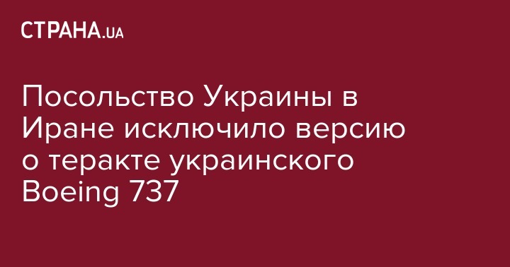 Посольство Украины в Иране называет основную причину авиакатастрофы самолета "МАУ", выполнявшего рейс PS752, - в неисправности двигателя. Такую же версию катастрофы ранее озвучили власти Ирана. Как сообщает пресс-служба посольства, лайнер вылетел из тегеранского аэропорта им.Имама Хомейни около 4:30 по киевскому времени. После взлета самолет Boeing-737 украинской авиакомпании МАУ разбился. Рейс PS752 осуществлялся по маршруту Тегеран -Киев.