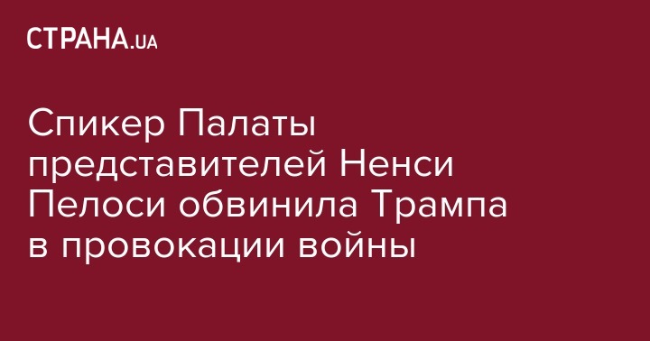 Спикер палаты представителей в США Ненси Пелоси заявила, что администрация президента Дональда Трампа провоцирует начало новой войны после событий в Ираке. Об этом она сообщила в Twitter.