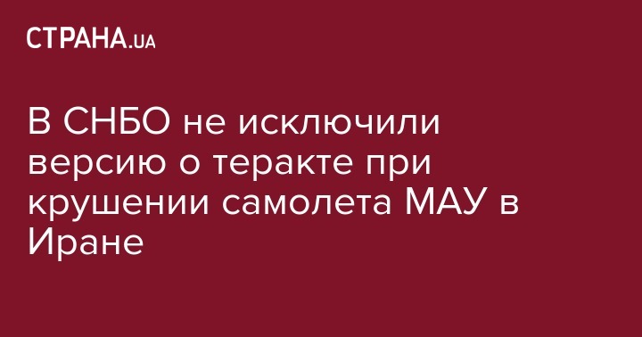 Глава Совета национальной безопасности и обороны Алексей Данилов заявлил что ни одна из версий крушения самолета МАУ Boeing 737-800 под Тегераном не должна быть проигнорирована. Таким образом, Данилов не исключил возможность теракта.