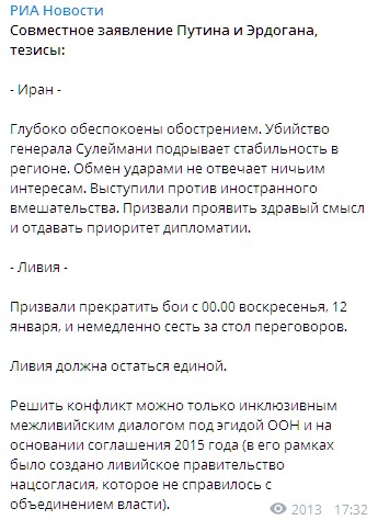 "По Ирану - глубоко обеспокоены обострением. Убийство генерала Сулеймани подрывает стабильность в регионе. Обмен ударами не отвечает ничьим интересам. Выступили против иностранного вмешательства. Призвали проявить здравый смысл и отдавать приоритет дипломатии", - говорится в сообщении.