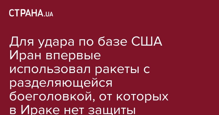 Для удара по иракской базе Айн-эль-Асад, где размещались американские солдаты, Иран использовал современные ракеты с разделяющейся боеголовкой. Об этом сообщает информационное агентство Tasnim.