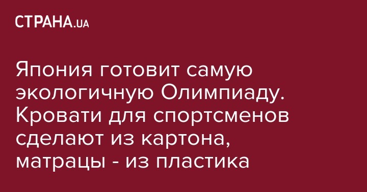 Для участников Олимпиады и Паралимпиады-2020 в Токио каркасы для кроватей сделают из перерабатываемого картона, а матрацы - из пластика. Об этом сообщает служба BBC со ссылкой на организаторов.