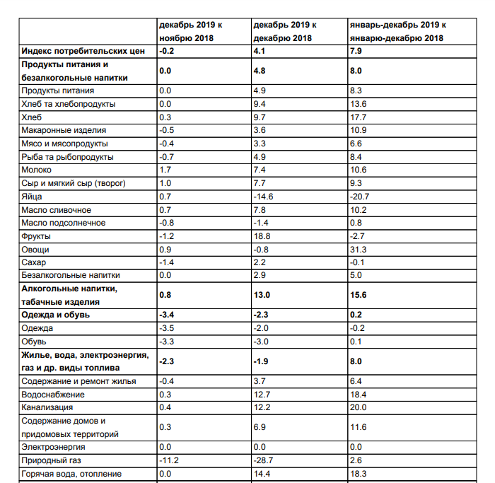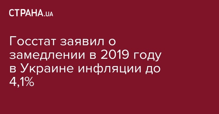 Госстат заявил о замедлении в 2019 году в Украине инфляции до 4,1%
