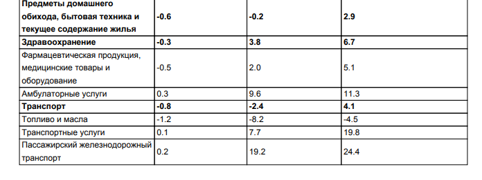 Как следует из данных Госстат за год более всего подорожал алкоголь, фрукты, хлеб, коммунальные услуги, железнодорожный транспорт и амбулаторные медицинские услуги. Больше всего подешевли яйца и газ.