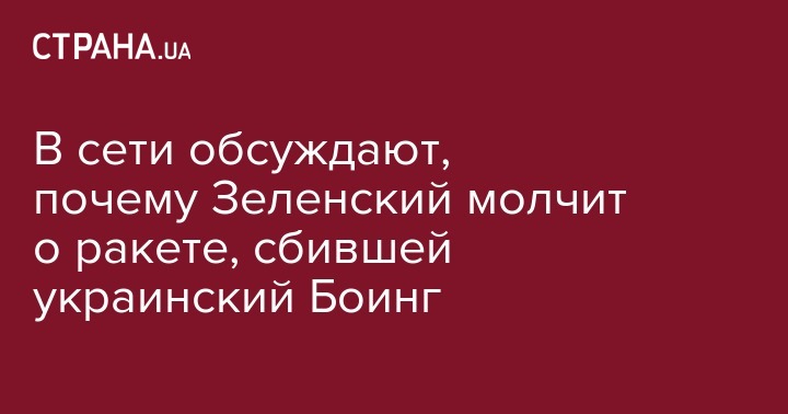 После того, как 9 января появилась неофициальная информация, что украинский самолет в Тегеране могла сбить иранская ракета, в сети обсуждают, почему Владимир Зеленский не выпустил заявление по этому поводу, как это сделал Джастин Трюдо и Борис Джонсон.
