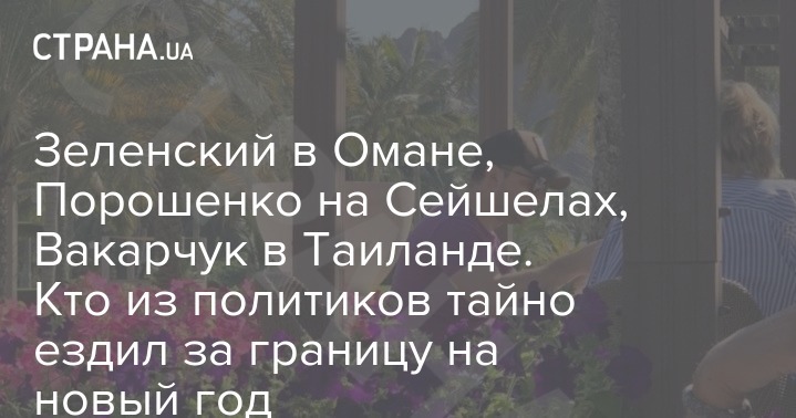 Владимир Зеленский тайно улетел в жаркий Оман, Петр Порошенко бороздил Индийский океан на фешенебельной яхте, глава СБУ Иван Баканов отдыхал на горнолыжном курорте Куршевель во французских Альпах, Святослав Вакарчук загорал на пляже в Таиланде.