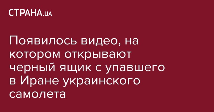 Телевидение Ирана показало видео, на котором демонстрируют бортовые самописцы (так называемый черный ящик) с украинского самолета Boeing 737, потерпевшего крушение 8 января недалеко от Тегерана. В интернете видео опубликовал в Twitter иранский корреспондент BBC Али Хашеми.