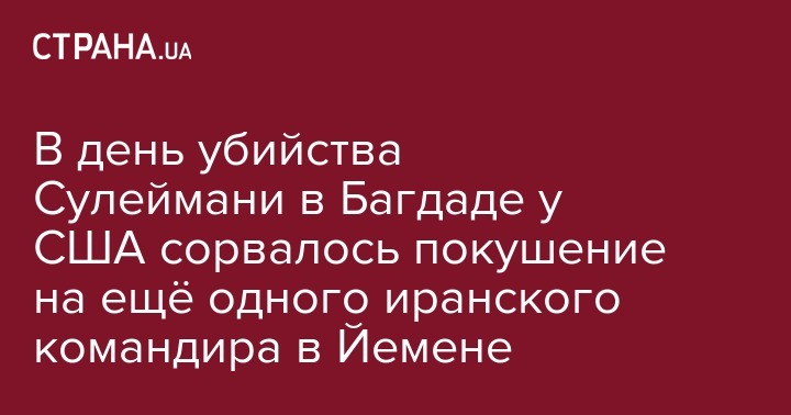 В день убийства Сулеймани в Багдаде у США сорвалось покушение на ещё одного иранского командира в Йемене