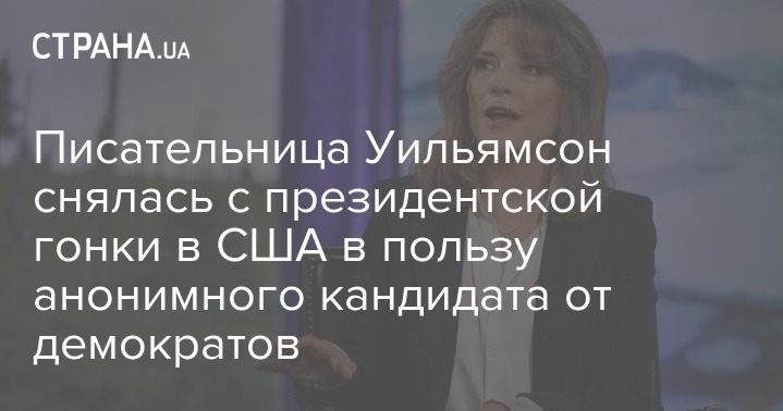 Американская писательница Марианна Уильямсон объявила о том, что завершает участие в предвыборной президентской гонке-2020. Об этом передает американская газета The Washington Post.